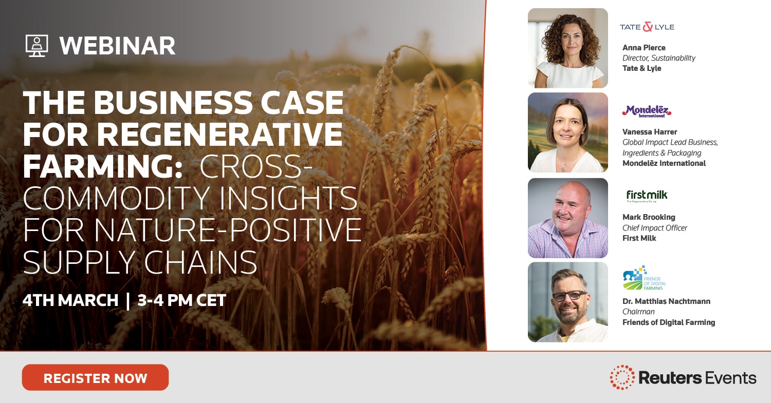 Reuters Events will host a live webinar on 4 March 2026 examining how agri-food companies are building a business case for regenerative farming. The session will take place from 3–4 pm CET and will feature speakers representing multiple commodity sectors.
